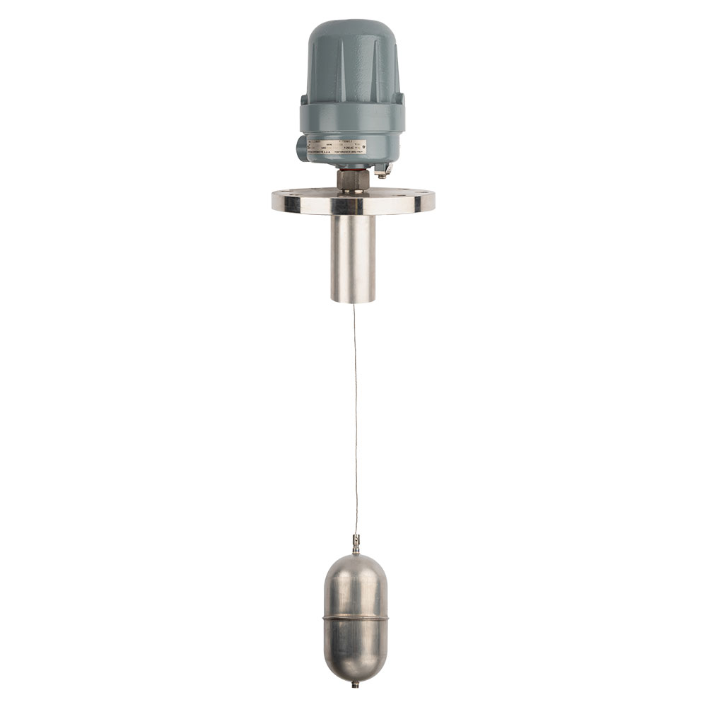 Interruttore di livello a spinta idrostatica per montaggio di testa con uno o due gruppi interruttori, per pressioni fino a un massimo di 50 kg/cm2, per temperature da -10° C a + 135°C e per fluidi con peso specifico fino a un minimo di 0,6 kg/dm3.